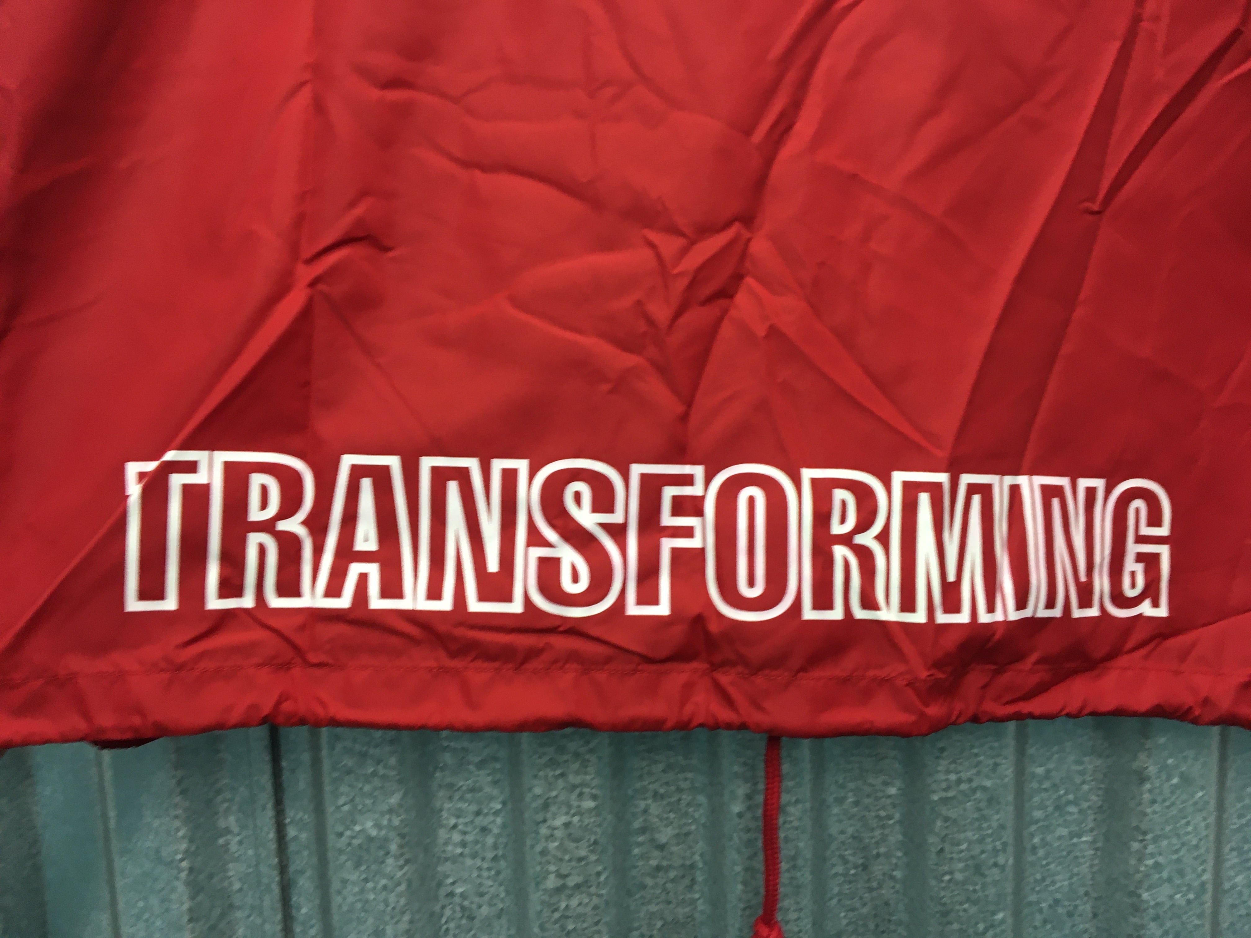 後ろのペイントの白の部分に生地の赤色が透けているところあります。